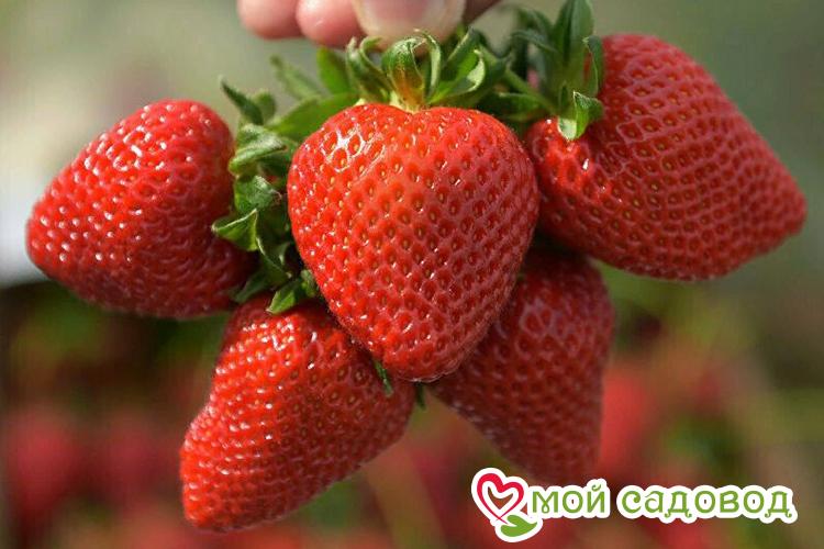 Выведенный сорт клубники Кимберли имеет много общего с привычными всем ягодами — красные сладкие сочные плоды, выглядывающие из-под глянцевой листвы. Ягоды отличаются гладкой поверхностью и конической формой в виде сердечка. Мякоть не имеет пустот. Плоды довольно крупные — средний вес ягоды составляет 25 г, а максимальная масса плода может достигать 50 г. При этом, каждая ягода содержит около 10% сахаров. В зависимости от климатических условий период активного плодоношения наступает в конце весны-начале лета. Посадка и уход за клубникой Посадка: осенью (с середины августа до середины октября) и ранней весной Освещение: яркий солнечный свет Почва: легкая – суглинок, супесь, чернозем или лесные, богатые органикой грунты с водородным показателем pH 5,7-6,2 Полив: утренний, с конца апреля – один раз в 10-12 дней, расходуя на каждый м² участка 10-12 л воды Подкормки: минимум три раза в год: ранней весной, в период бутонизации и в августе Обрезка: когда листья начнут желтеть, покрываться пятнами и сохнуть, их обрезают Размножение: усами (розетками), делением куста