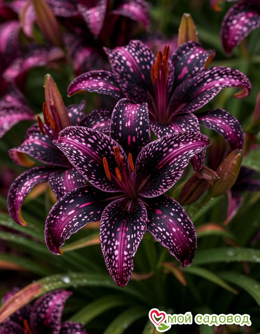 Лилейник (Hemerocallis) — многолетнее травянистое растение, принадлежащее к семейству Ксанторреевые (Xanthorrhoeaceae), хотя в некоторых классификациях его относят к семейству Асфоделовые (Asphodelaceae) или Лилейниковые (Hemerocallidaceae). Его название происходит от греческих слов «hemera» (день) и «kallos» (красота), что отражает основную особенность цветения лилейников: каждый цветок распускается всего на один день. Однако благодаря множеству бутонов на цветоносе цветение одного куста может продолжаться от нескольких недель до нескольких месяцев. Внешний вид и строение: Лилейник представляет собой травянистое растение с корневой системой, состоящей из мощных мясистых корней, служащих для запасания воды и питательных веществ. От этих корней отходят многочисленные пучкообразные линейные или мечевидные листья, образующие прикорневую розетку. Листья, как правило, ярко-зелёные, но у некоторых сортов могут быть сизоватыми или иметь другие оттенки. Они могут быть как узкими, так и широкими, в зависимости от сорта. Высота куста варьируется от карликовых сортов (20-30 см) до высокорослых (100 см и более), что также зависит от сорта. Цветоносы лилейников, как правило, безлистные, прямостоячие и возвышаются над листьями. На верхушке цветоноса формируется несколько бутонов, которые раскрываются по очереди, обеспечивая продолжительное цветение. Цветки лилейников разнообразны по форме, размеру и окраске. Они могут быть простыми (6 лепестков), махровыми (с увеличенным количеством лепестков) или полумахровыми. Форма цветков варьируется от воронковидной до звёздчатой, паукообразной или круглой. Диаметр цветков может варьироваться от 5 до 25 см и более. Окраска цветков лилейников поражает своим разнообразием: от нежно-кремовых и пастельных тонов до ярких красных, оранжевых, желтых, фиолетовых и даже почти черных. Часто встречаются двухцветные и многоцветные сорта с контрастными краями, полосками, глазками (окрашенное пятно в центре цветка) и другими узорами. Лилейники неприхотливы и хорошо растут практически в любых условиях. Они предпочитают солнечные места, но могут переносить и полутень, особенно в жарком климате. Почва должна быть плодородной, хорошо дренированной, с нейтральной или слабокислой реакцией. Уход за лилейниками включает в себя: Полив: регулярный полив в сухую погоду, особенно в период активного роста и цветения. Подкормка: весенняя подкормка комплексным минеральным удобрением для многолетних растений, повторная подкормка после цветения для поддержания здоровья растения. Мульчирование: Мульчирование почвы вокруг кустов помогает сохранить влагу, подавить рост сорняков и защитить корни от перегрева. Обрезка: удаление отцветших цветоносов для поддержания декоративности и стимулирования повторного цветения (у повторноцветущих сортов). Осенью обрезают отмершую листву. Деление кустов: Регулярное деление кустов (каждые 3-5 лет) способствует омоложению растений и сохранению сортовых признаков. Деление проводят весной или осенью. Защита от вредителей и болезней: Лилейники относительно устойчивы к вредителям и болезням, но иногда могут поражаться слизнями, тлей или ржавчиной. При необходимости применяют соответствующие меры защиты. Использование в ландшафтном дизайне: Лилейники широко используются в ландшафтном дизайне благодаря своей неприхотливо